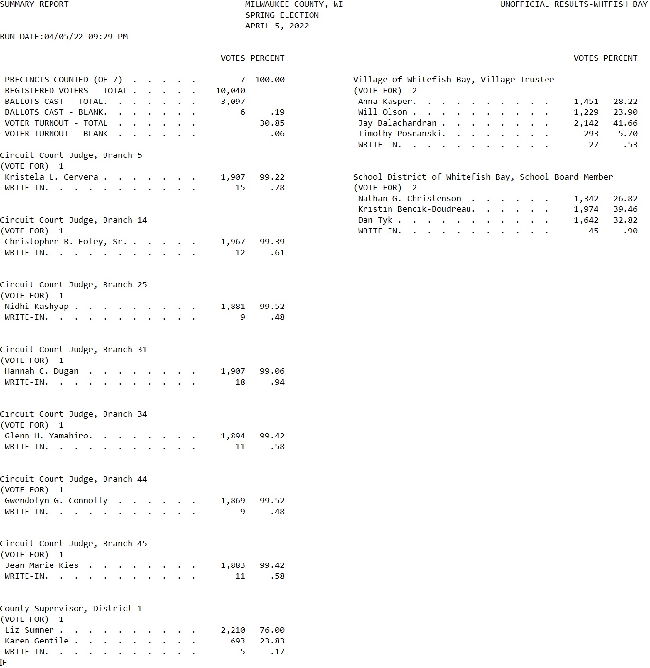 Posted on: April 6, 2022[ARCHIVED] Unofficial Whitefish Bay Spring Election Results